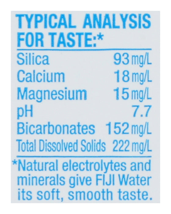Fiji Natural Artesian Water on a remote island over 1,600 miles from the nearest continent, tropical rain slowly filters through volcanic rock into a sustainable ancient artesian aquifer. Drop by drop, fiji water acquires the natural minerals and electrolytes that give it its signature soft, smooth taste. Perfected by nature, there's nothing on earth quite like it.