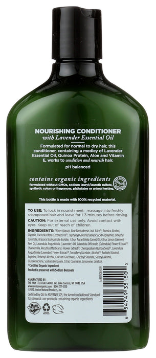 Avalon Organics Nourishing Lavender Conditioner designed to deliver vitamins and essential nutrients to hair, avalon organics nourishing lavender conditioner strengthens strands and provides critical moisture to restore natural elasticity. For hair that is normal to dry, a medley of lavender essential oil, quinoa protein, aloe and vitamin e work in harmony to condition and nourish every strand. Includes one 11 oz bottle of Avalon Organics Nourishing Lavender Conditioner, deep rooted beauty is the essence of the avalon organics brand. Guided by the infinite wisdom of nature and the knowledge that all beauty begins with the earth, the avalon organics brand harnesses the pure benefits in botanicals to create products that contribute to a holistic lifestyle of health, wellness and sustainability.