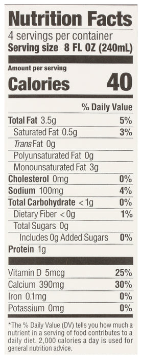 Milkadamia’s Unsweetened Macadamia Milk is a dairy-free, cholesterol-free and non-GMO milk for smoothies, breakfast cereal and baked goods. Each 32 fl. oz Container contains 4 eight oz servings of vegan, soy, lactose-free Unsweetened Macadamia Milk. Our Macadamia Milk contains 50% more calcium than 1% dairy milk.