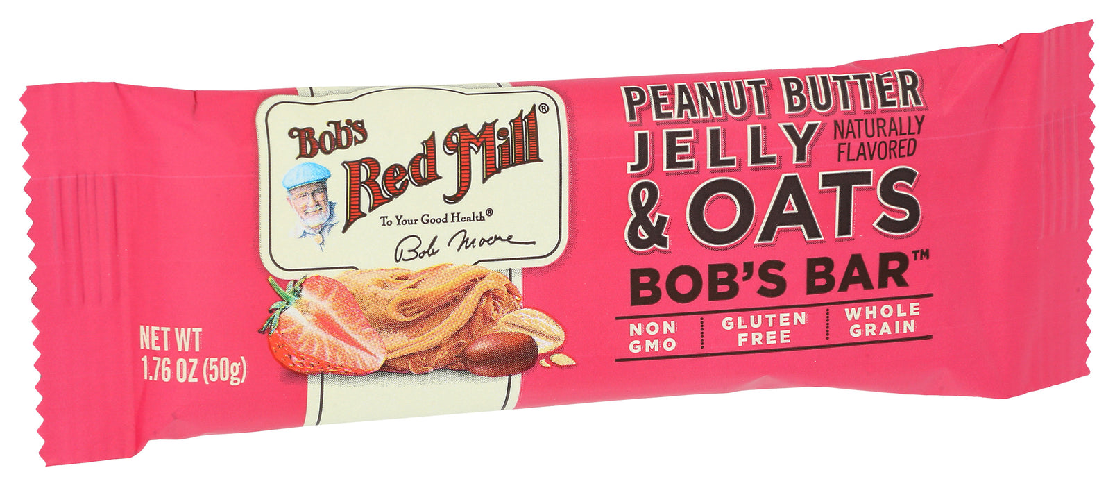 Bob's Red Mill Bar Peanut Butter Jelly & Oats is a made with whole grain oats, peanut butter and organic honey.
