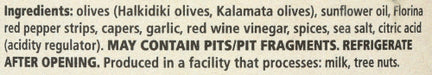 Divina All-Natural Olive Bruschetta is a delicate and delicious snack. This product is prepared using all natural ingredients, free from harmful or unnecessary additives. This helps to preserve the pure, natural taste of the olive itself. With hints of red pepper, capers and garlic, Divina All-Natural Olive Bruschetta offers a unique flavor to compliment a meal or appetizer. Each jar of Divina All-Natural Olive Bruschetta contains approximately 7 servings and 110 calories per serving.