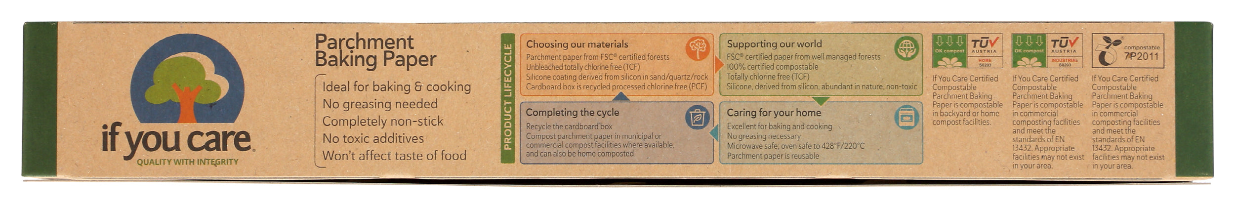 If You Care Fsc Certified Parchment Baking Paper is perfect for cooking and baking without the need to be greased. This environmentally friendly parchment paper is totally chlorine free, 100% certified compostable, and sourced from fsc certified forests. These sheets are reusable and safe for use in the microwave or oven up to 428 degrees fahrenheit. Each roll contains 70 sq ft of Parchment Paper.