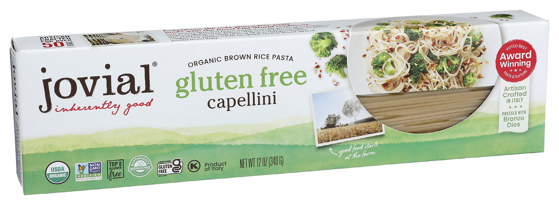 Jovial Pasta Brwnrce Org Capelli Gluten Free is a crafted in italy using time-honored production methods, our brown rice capellini is as close to traditional as gluten free can be. You won’t feel like you’re missing out with this pasta, because our master pasta artisans use bronze dies and slow drying to create award-winning taste and texture.