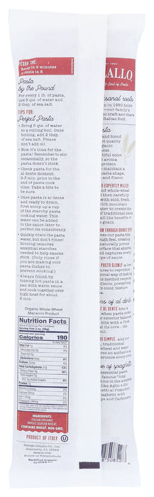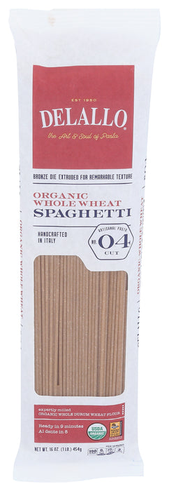 Delallo Organic Whole Wheat Spaghetti is an organic, whole grain, vegan 100% whole wheat pasta. It is long cut, and maybe the most well known pasta there is. Each cut of pasta is formed with artisanal bronze plates to impart a coarse, sauce-hugging texture. The pasta is then dried slowly at a low temperature to retain its fresh bread flavor and famous al dente bite. This pasta is certified organic by icea. Each bag contains 16 oz of pasta.