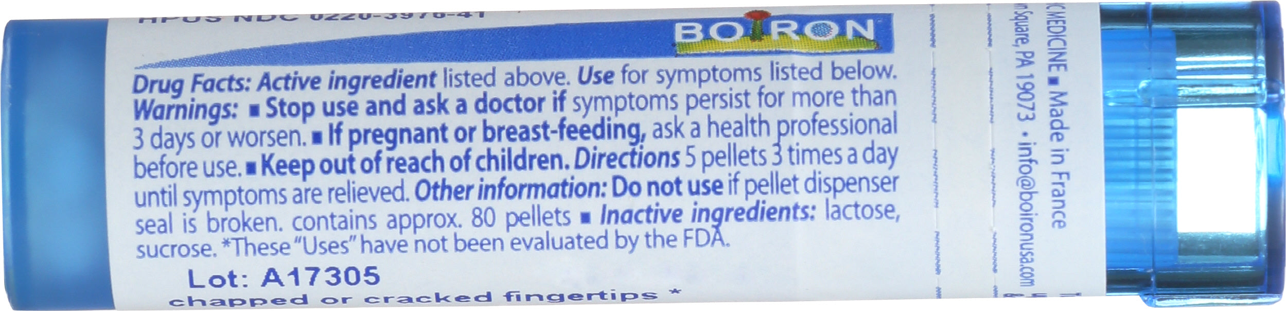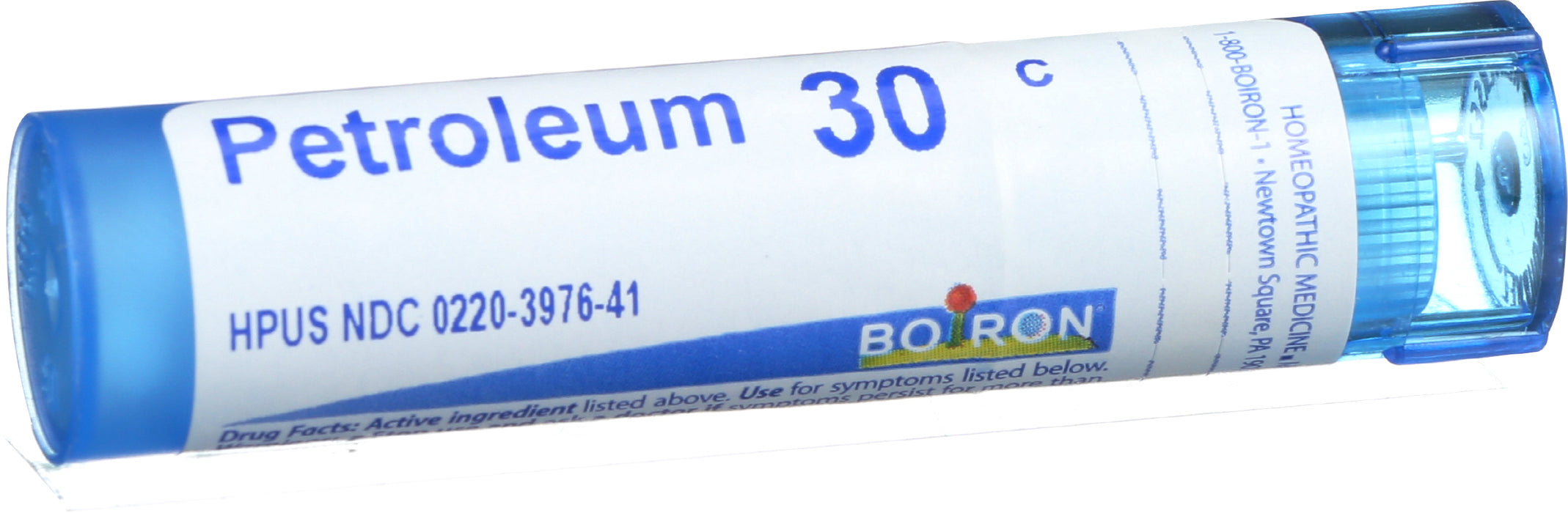 Boiron Petroleum 30c is a homeopathic remedy intended to relieve chapped or cracked fingertips. To administer this natural medication to adults or children aged 2 and older, place five of the dissolvable pellets under your tongue three times daily. This natural product comes in a tube containing about 80 pellets. *