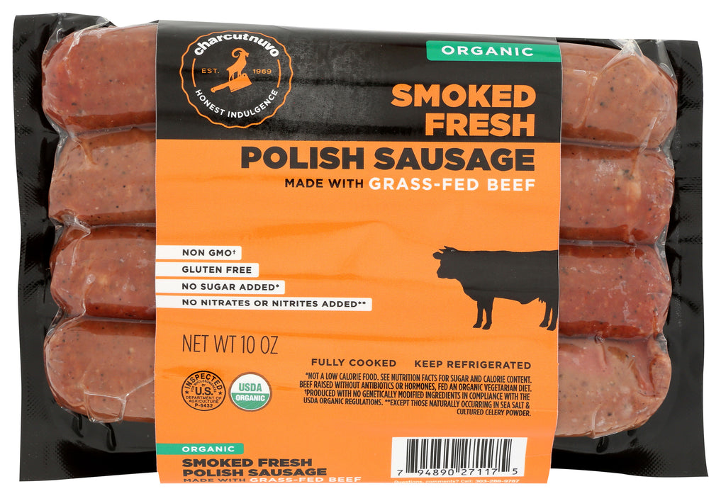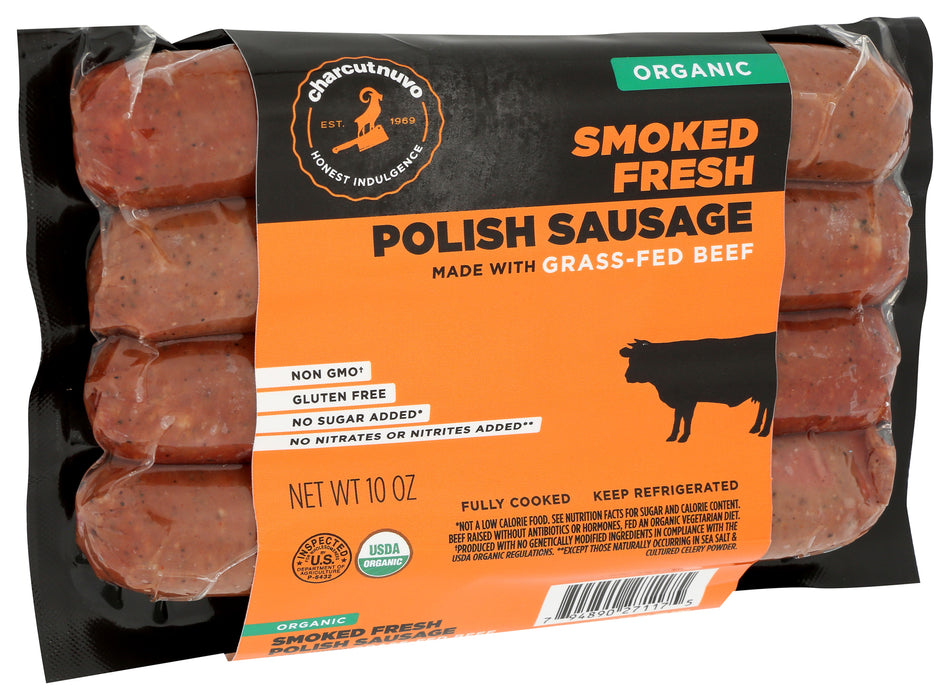 Charcutnuvo Organic Smoked Fresh Beef Polish Sausage, 10 Oz