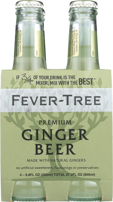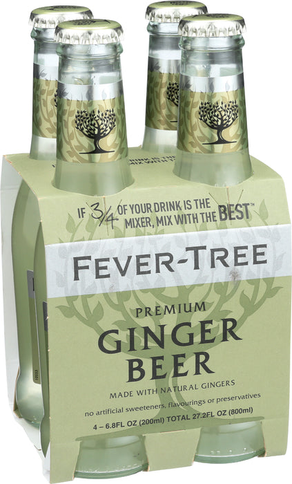 Fever-tree Ginger Beer is a naturally brewed product that contains a unique blend of the finest Gingers, subtle botanical flavors and spring water. This drink is not too sweet on the palate and has deep, long-lasting Ginger character. It is a delicious blend of carbonated spring water, cane sugar, Ginger root and natural flavors, and has no artificial flavors, sweeteners or preservatives. Each 4 bottle pack contains 27.2 fl. oz of Ginger Beer.