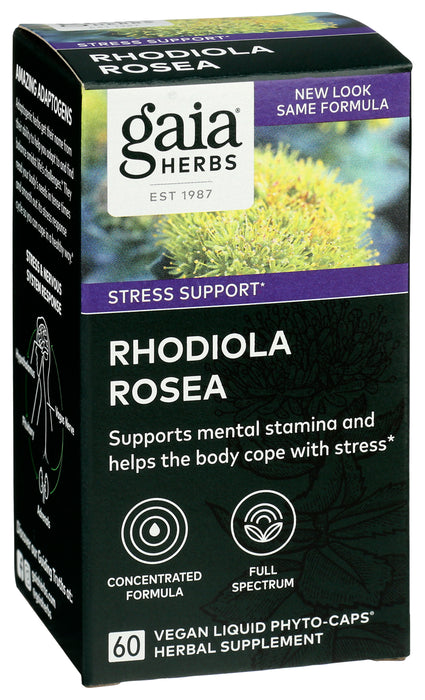 Gaia Herbs Single Herbs Rhodiola Rosea Dietary Supplement helps to promote a healthy mood and stress response. The concentrated extract in this 60-count bottle of vegetarian liquid phyto-caps contains 6 mg of active rosavins in each liquid capsule to encourage your body to perform at optimal energy levels and naturally adapt to stress. Rhodiola extract is harvested from siberian alpine meadows using ecological practices to ensure high quality and potency.