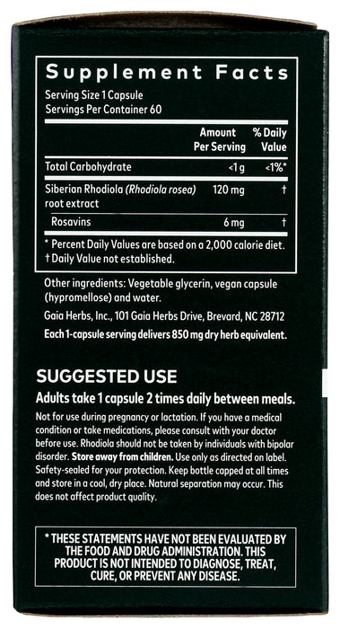 Gaia Herbs Single Herbs Rhodiola Rosea Dietary Supplement, 60 caps