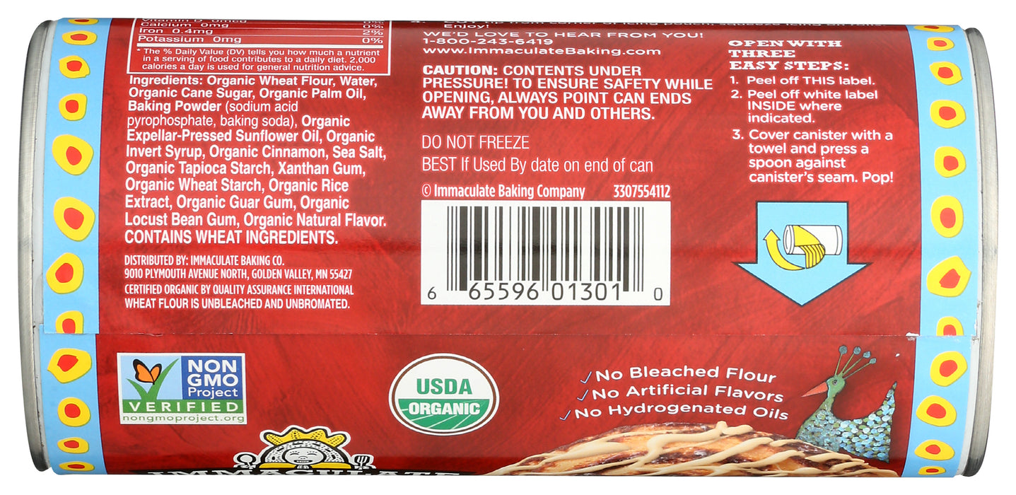 Immaculate Cinnamon Rolls, Ready-To-Bake is honestly delicious. This product makes baking cinnamon rolls a quick and easy experience and makes five rolls. Immaculate Cinnamon Rolls, Ready-To-Bake does not contain artificial flavors, preservatives or hydrogenated oils. This product is certified USDA organic and contains 17.5 oz of Immaculate Cinnamon Rolls.