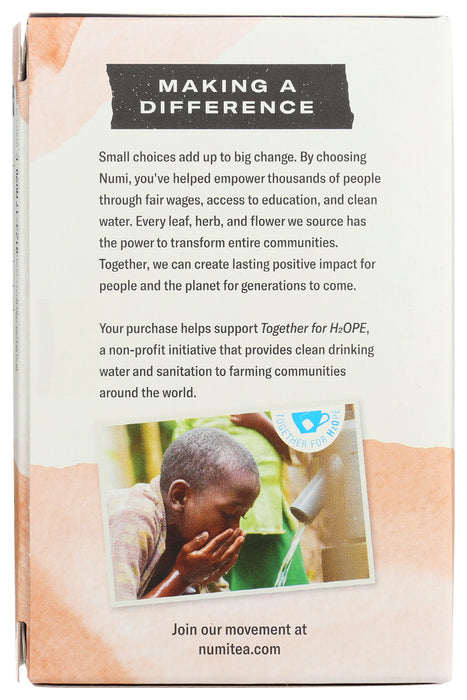 Numi Tea Bag Rooibos is hearty blend of traditional morning teas offers an energizing start to the day. Bold and robust black teas from assam, ceylon and darjeeling create a hearty, balanced and complex cup.