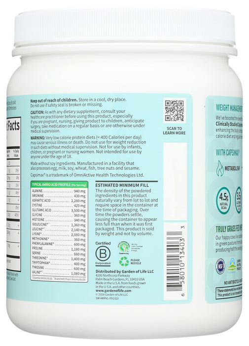 Garden Of Life Sport Whey Protein Weight Management Vanilla & improved performance we've boosted the benefits of grass fed whey protein with clinically studied capsimax to kickstart your metabolism, enhancing the body composition benefits of your reduced calorie diet and regular exercise program. *
