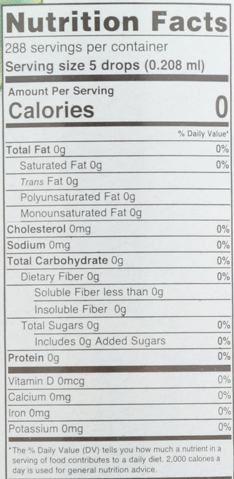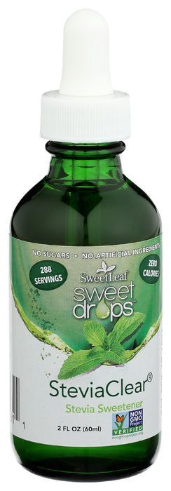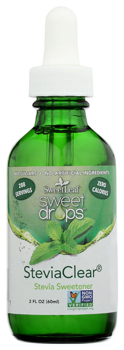 Sweetleaf Steviaclear Liquid Stevia is an all-natural, zero calories and zero carb sweetener made from stevia leaves. With a serving size of only about 5 drops ( or to taste ) to an 8 oz. glass, you'll get as many as 288 servings in this 2 fl. oz. bottle. It's healthy, diabetic-friendly and contains no bitterness or aftertaste.