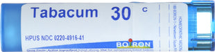 Boiron Tabacum Homeopathic Medicine is used to treat motion sickness with cold sweats. Tobacco is the common name for tabacum. This medicine has not been evaluated by the fda. Take five Tabacum pellets three times a day for up to three days for best results. Stop taking this medicine and consult your physician if your symptoms persist or worsen after three days. Each 80 count tube features a child-safety cap that you must twist and turn to open. *