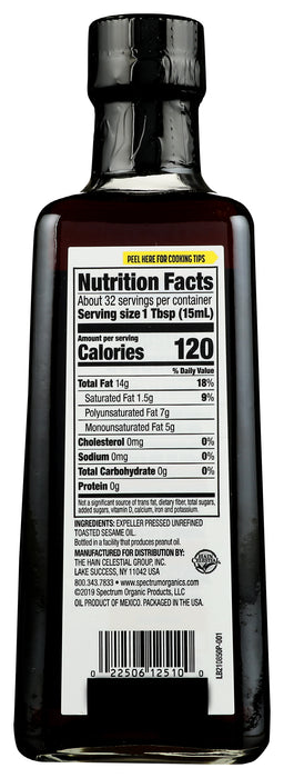 Spectrum Naturals Expeller Pressed Toasted Sesame Oil, 16 Oz.