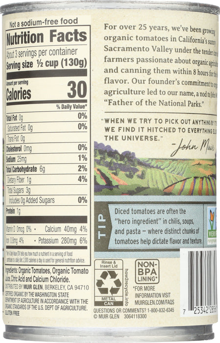 Muir Glen Tomatoes, No Salt Added, Diced, 14.5 Oz