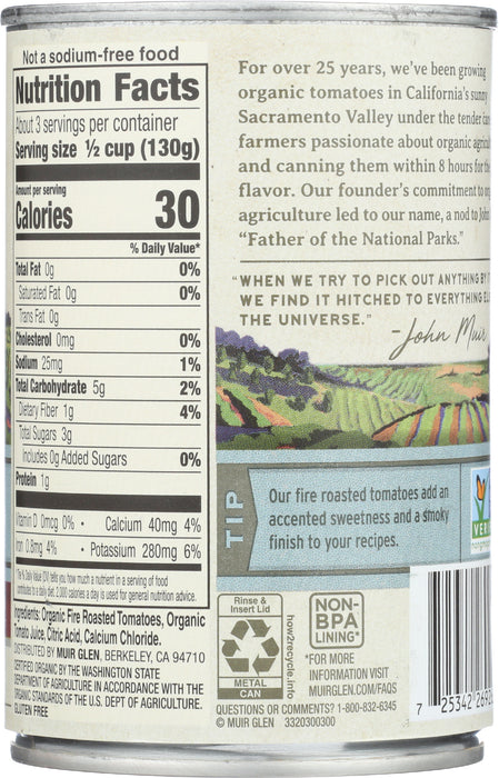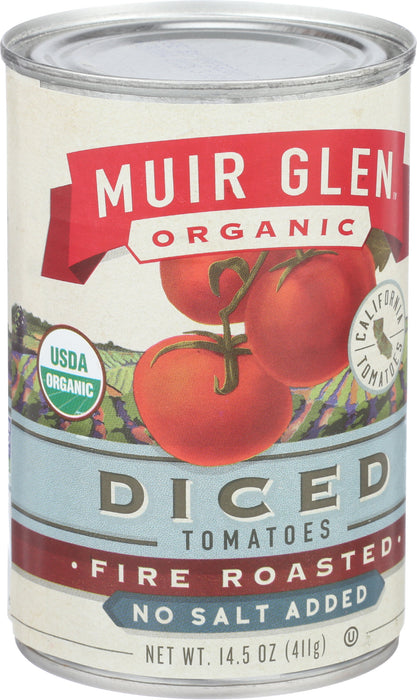 Muir Glen Tomatoes, Fire Roasted, Diced, No Salt Added, 14.5 Oz.