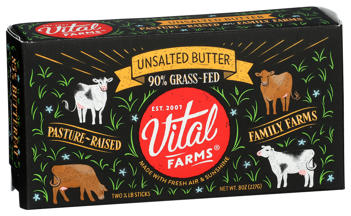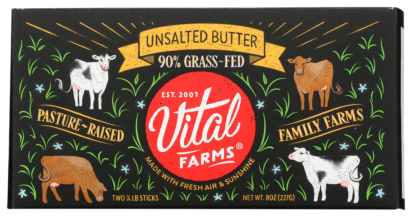 - Package includes: 2 sticks of 4oz vital farms unsalted butter.