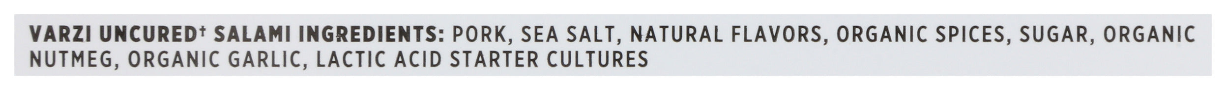 - Uncured italian salami made with sea salt and nutmeg no nitrates or nitrites added except for those naturally occurring in sea salt & celery powder.