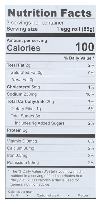- One 3 count box of Gluten-Free Vegetable Egg Rolls.