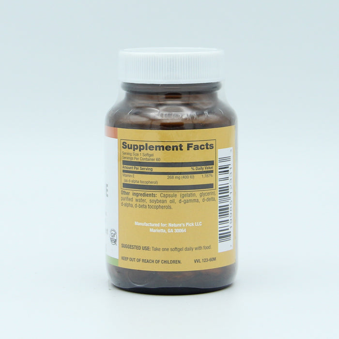 Nature's Pick Vitamin E 400 IU Plus MT, 60 sgel